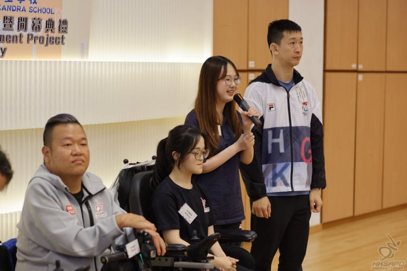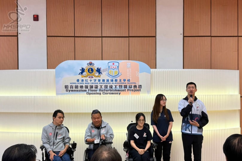 香港紅十字會雅麗珊郡主學校體育館前年因「世紀暴雨」嚴重受損,如今喺香港百俊獅子會嘅支持下完成翻新,煥然一新。 本會名譽法律顧問許宗盛先生 GBS, MH, JP、主席梁禮賢醫生、總幹事吳曙明先生、香港硬地滾球代表隊總教練郭克榮先生,聯同校友運動員梁育榮、龍子健、王愉程同埋袁泳琪親臨祝賀。除分享運動員生涯嘅寶貴經驗,更鼓勵在場師弟妹善用新設施,勇敢追夢,延續香港殘奧運動嘅輝煌。
