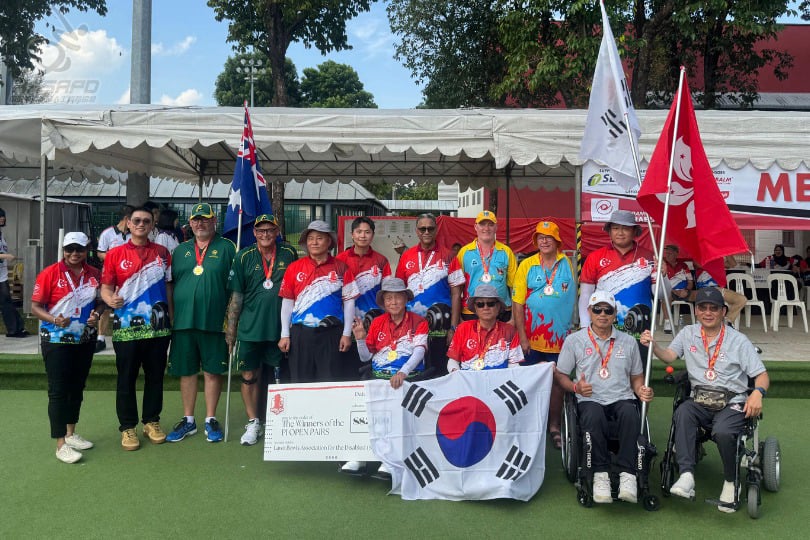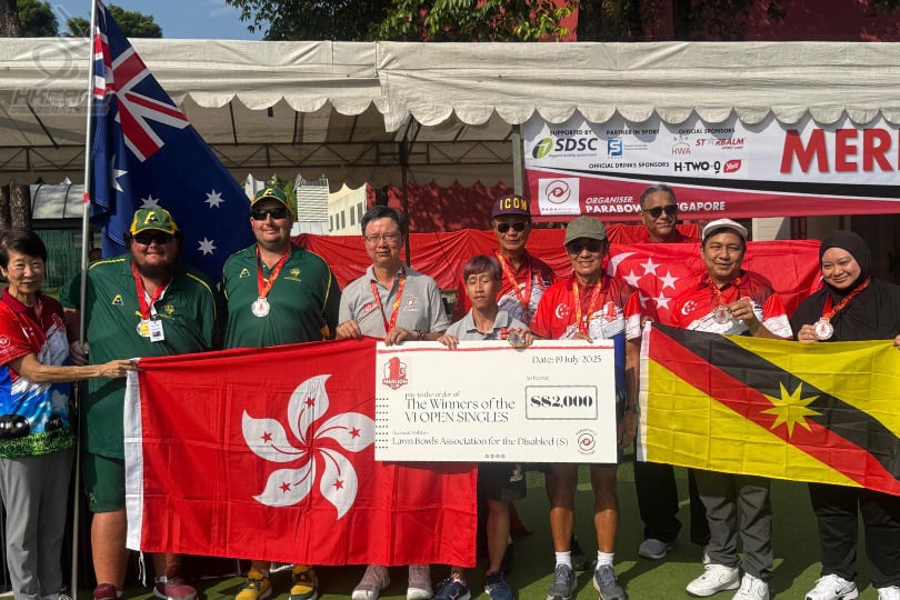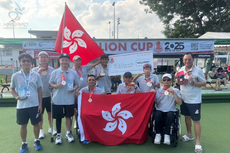 於新加坡舉行嘅第三屆魚尾獅國際殘疾人草地滾球錦標賽 2025於7月20日落幕,港隊表現出色,在單人賽、雙人賽及四人賽中合共奪得1金1銀2銅佳績。其中,鄧子朗展現出色技術,不但奪得VI視障組單人賽金牌,更夥拍李志明取得VI視障組雙人賽銀牌。 港隊成績如下: 視障組單人賽 鄧子朗 金牌 李志明 八強 肢體殘疾組雙人賽 呂偉光、畢熾揚銅牌 温聶銘、唐蔚森 八強 視障組雙人賽 李志明、鄧子朗 銀牌 肢體殘疾組四人賽 温聶銘、呂偉光、畢熾揚、唐蔚森 銅牌