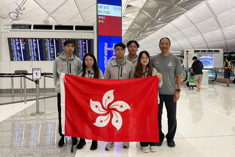ITTF 巴西殘疾人乒乓球精英賽 2025 將於 10月3日至 7日於巴西聖保羅舉行。今次港隊派出 4名運動員出戰,分別參加 TT7 和 TT9 組的男子單打、女子單打、男子雙打、女子雙打。左起:教練葉浩楠、 運動員焦瑾珊、王志賢、領隊兼教練陳杰、運動員王愉程、運動員何嘉盛